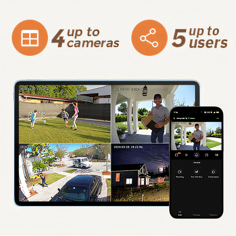 Stay connected anytime, anywhere. You can simultaneously view up to 4 live camera feeds directly on your smartphone or tablet.